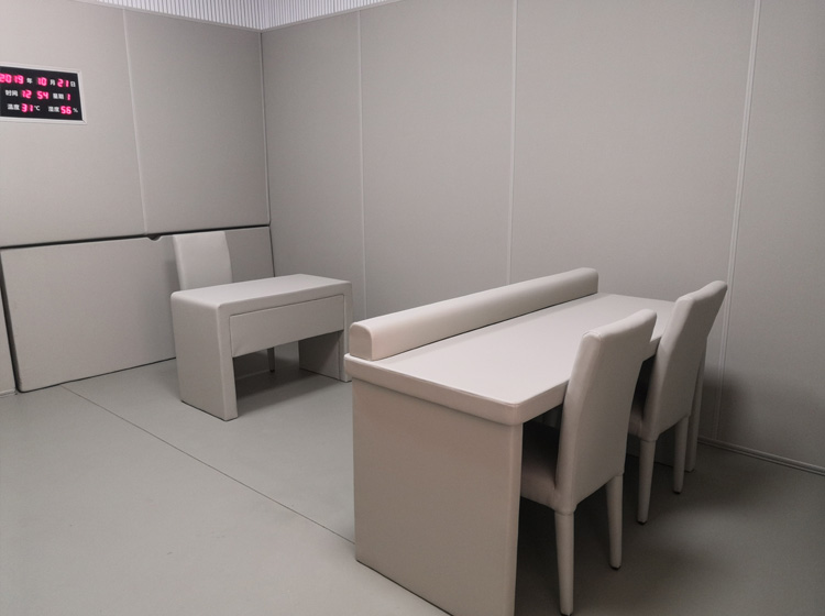 談話室要做到建設利于工作,安全保密,經濟實用,簡樸莊重就需要對墻面進行軟化處理,同時也要具備隔音消音及阻燃的功能。出產的防撞皮革軟包就集防撞、阻燃、消音、美觀為一體,一次解決建設需要達到多重標準的難題。
