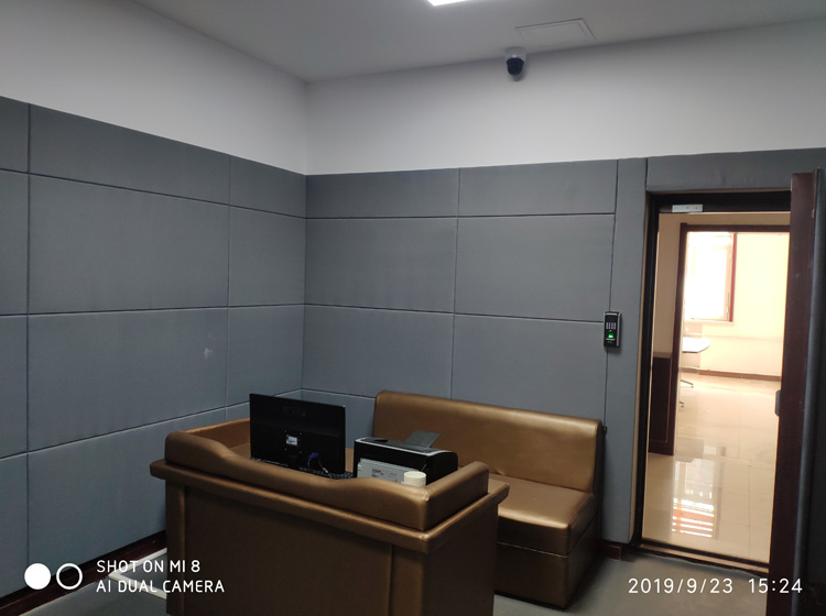 看守所防撞軟包材料是根據聲學原理精致加工而成,由皮革飾面、框組邊條和吸音棉、阻燃鋁箔組成。吸音軟包核心材料是高密度納米分子材料。產品規格:1250mm*2450mm 產品顏色:淺灰色或米黃(壓邊條、收邊條、地腳線的顏色和防撞軟包皮革顏色相近)產品厚度:/20mm/25mm/30mm 產品等級:阻燃B1級、環保E1級。